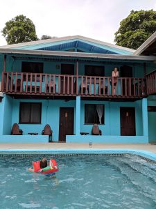 Seit Montag sind wir im Hotel Pelicano direkt am Strand am Pazifik in Esterillos Este. Die Wellen sind hier nicht ganz so hoch und es geht weit flach ins Wasser. Ingrid zieht bisher aber trotzdem das ausgiebige Baden im Pool vor. Edgar findet das ebenfalls toll.