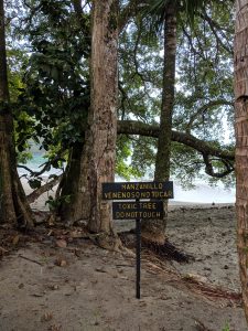 Der hochgiftige Manzanillo-Baum wächst am Strand im Park, ist aber mit Warnhinweisen beschildert. Man darf ihn nicht anfassen oder seine Früchte essen, da dies zu verbrennungsähnlichen Verletzungen der Haut bzw. Vergiftungen führt.