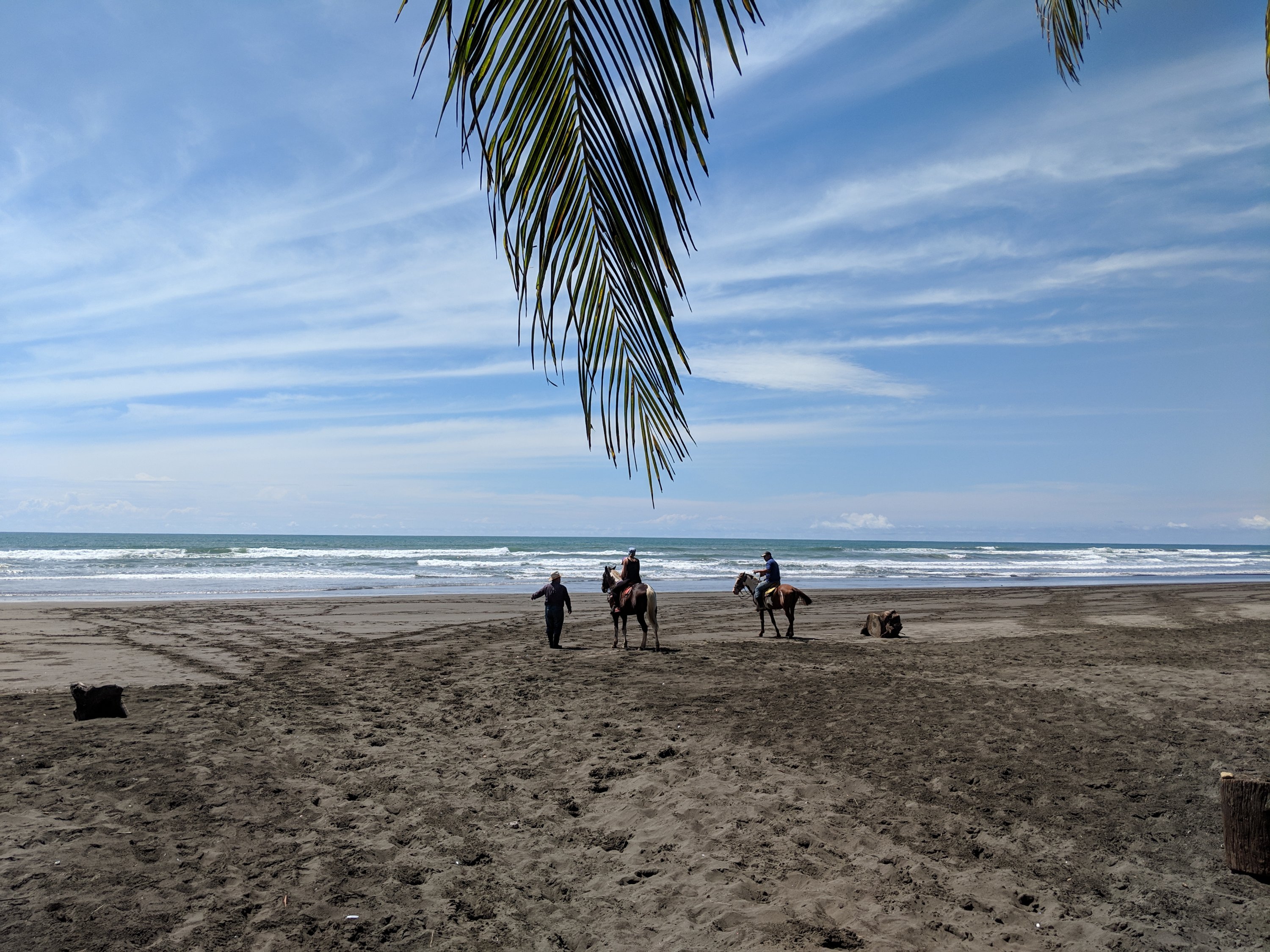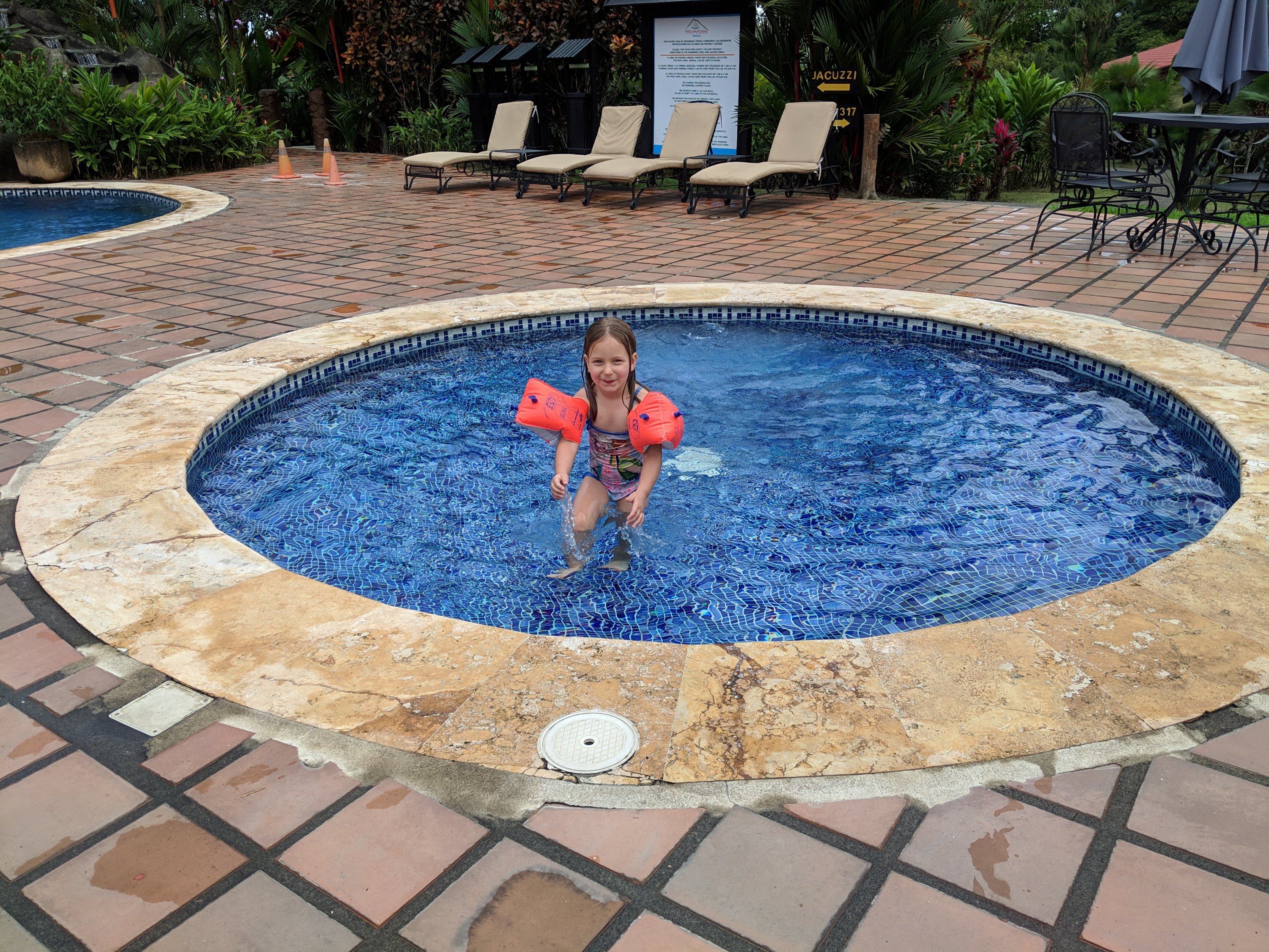 Seit Montag sind wir im Hotel Pelicano direkt am Strand am Pazifik in Esterillos Este. Die Wellen sind hier nicht ganz so hoch und es geht weit flach ins Wasser. Ingrid zieht bisher aber trotzdem das ausgiebige Baden im Pool vor. Edgar findet das ebenfalls toll.