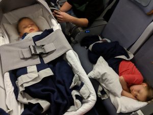 Eddie zeigte sich auch wie immer als Frohnatur, Ingrid war zufrieden mit den Spielsachen, Snacks und dem Lufthansa Filmangebot („der Elsa-Film“…). Beide Kids haben dann irgendwann abends geschlafen und mussten zur Landung geweckt werden.